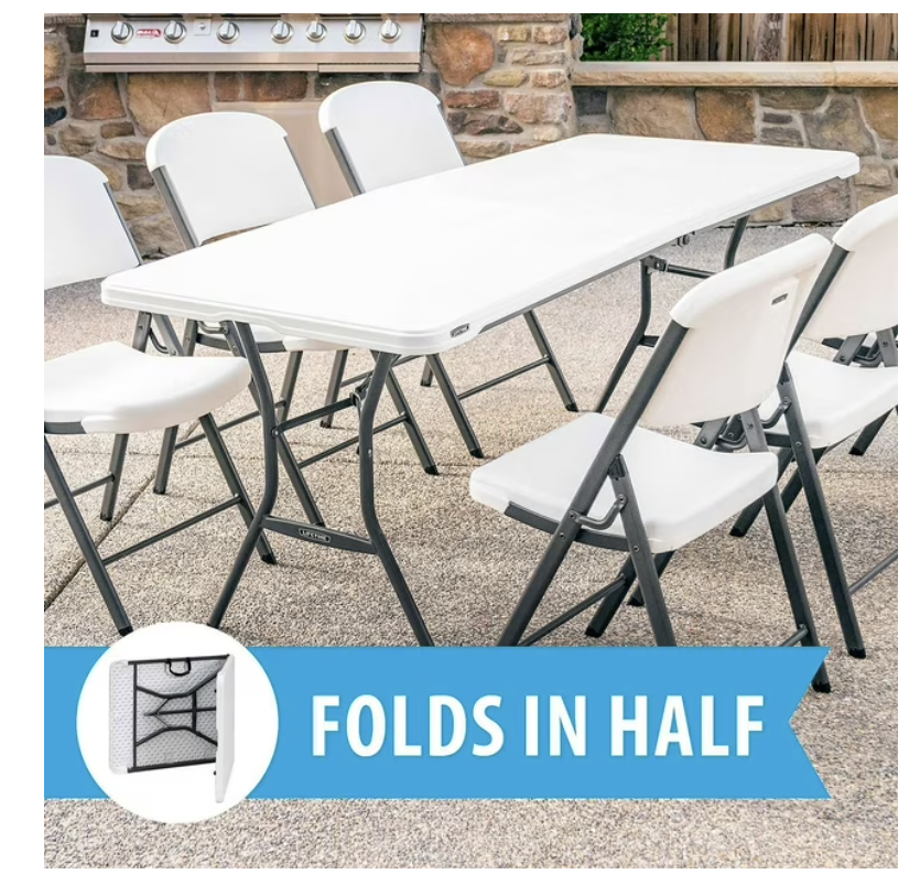 The table is incredibly durable with dent-resistant corners and edges and a weather-resistant build made to withstand extreme conditions. The stain-resistant tabletop makes this table easy to clean after any event and keeps your table looking great for years. The quality steel construction will help this stand the test of time and ensure you can continue using your product for years to come. The steel frame is bonded with enhanced polymer resin that creates a high-quality, durable finish. This powder-coating allows for maximized protection from rust, wear, damage, and the elements. The Lifetime Fold-In-Half Table is a great option for any home and ideal for a family game night, birthday parties, and many other events.
